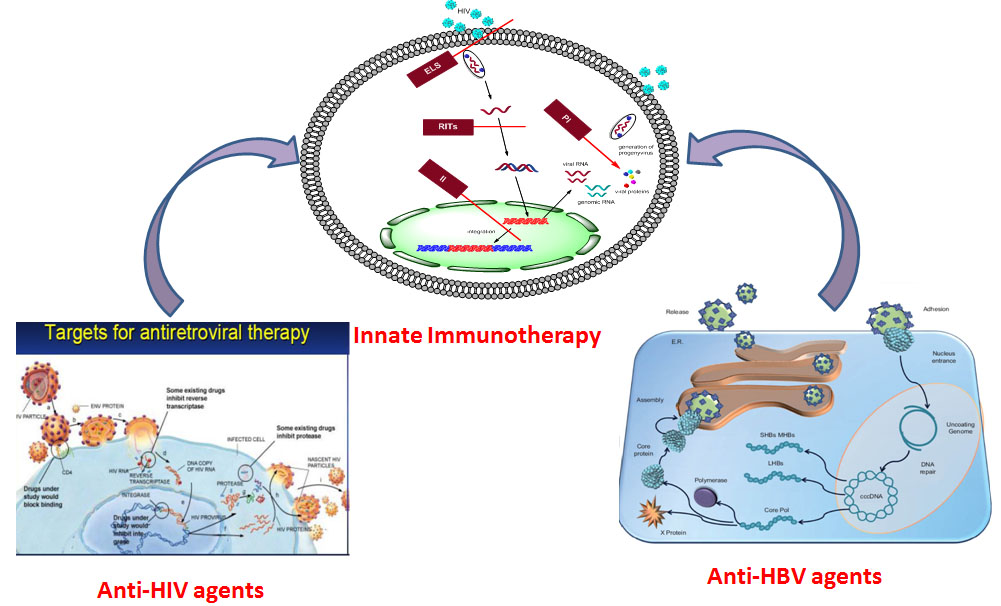 HIVHBV病毒作用的靶点、抑制剂的作用机理、构构关系及耐药问题进行研究。结合计算机辅助药物设计、分子模拟等技术,设计多种类型的单靶点及多靶点抑制剂,希望从中找到各项性能更为优良的抗耐药性的抗病毒先导化合物。