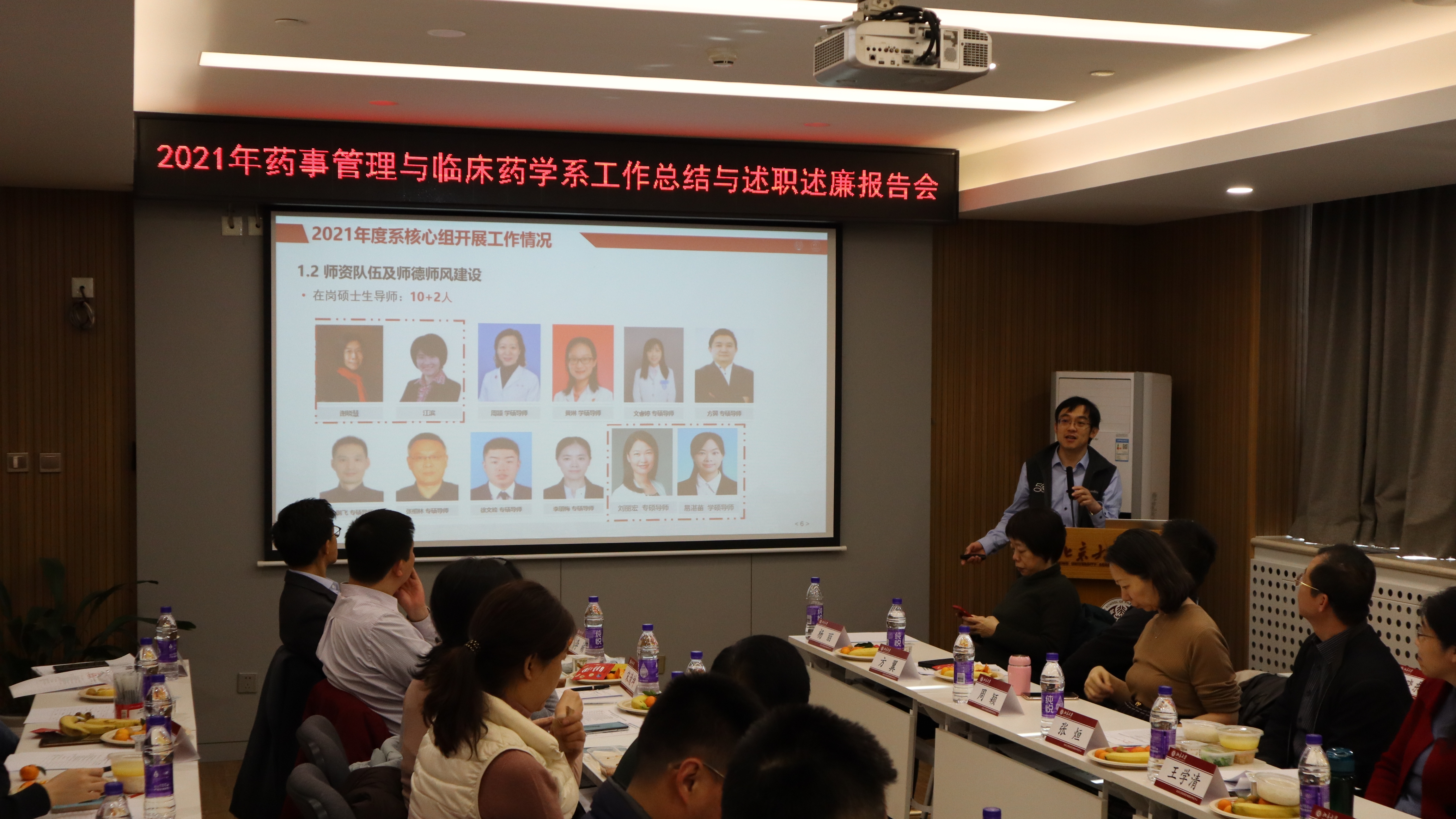 2022年1月11日,2021年度北京大学药学院药事管理与临床药学系工作总结与述职述廉报告会在北京大学药学楼216会议室顺利召开。药学院党委书记徐萍教授、院长周德敏教授、附属教学医院导师、药学院相关职能部门和优秀毕业生代表等53人出席并参加了会议。